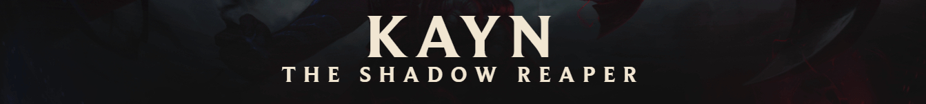 Kayn führt eine uralte Waffe und ringt mit Rhaast, dem Düsteren in ihr, um Kontrolle. In jedem Spiel muss einer dem anderen zum Opfer fallen. Kayn verbessert seine Schattenfähigkeiten durch die Jagd von Fernkämpfern, während Rhaast seinen Blutdurst in der direkten Konfrontation mit dem Gegner stillt. Gewinnt Kayn die Auseinandersetzung, steigt er zum Rang des Schattenassassinen auf. Geht Rhaast als Sieger hervor, ergreift er Besitz von seinem Träger und übernimmt die Führung.